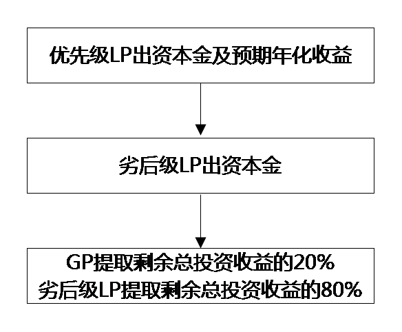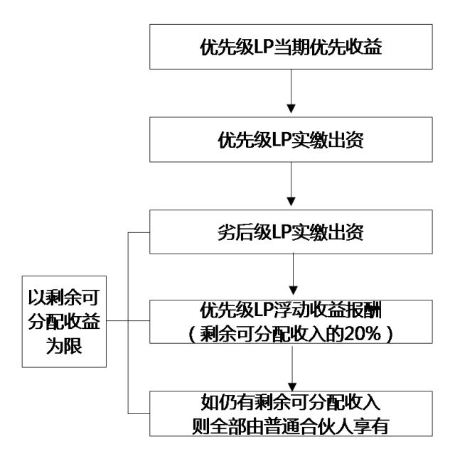 以存在结构化安排的并购基金为例,其收益分配原则和顺序一般如下图所示: