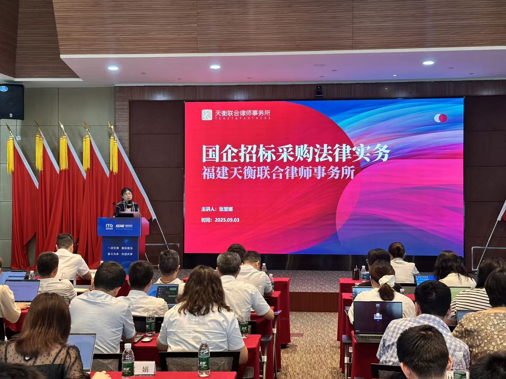 2025年9月3日,天衡张慧娜律师受邀为厦门海翼集团有限公司作《国企招标采购法律实务》专题讲座。厦门海翼集团有限公司领导,各部门负责人、相关业务骨干等80余人参加。本次讲座旨在深化企业员工对国企招标采购法律法规的理解,提升招标采购过程中的风险防控意识,助力企业实现规范、高效、合规的采购管理。